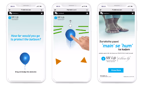 The rich-media campaign encouraged users to drag a balloon on their phone’s screen, away from falling obstacles. On failing to protect the balloon from the obstacles, the ad transitions to the brand’s core message that advises users to protect themselves from obstacles by investing in its insurance policies.